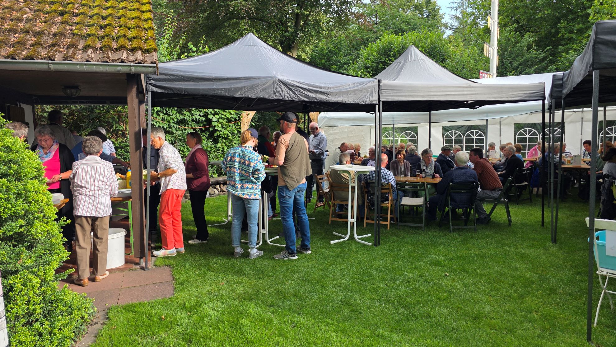 Es waren kräftige Niederschläge, sogar mit Gewitter angekündigt. Im gegenseitigen Einvernehmen ist der Musikzug erst garnicht angereist und hat nicht gespielt. Wir hätten keine Möglichkeit gehabt, die Musiker und ihre Instrumente vor dem Regen zu schützen.